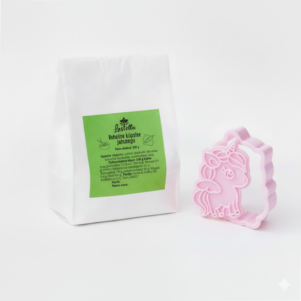 - 1 küpsisevorm sinu valikul (ükssarvik, loom või sõiduk)